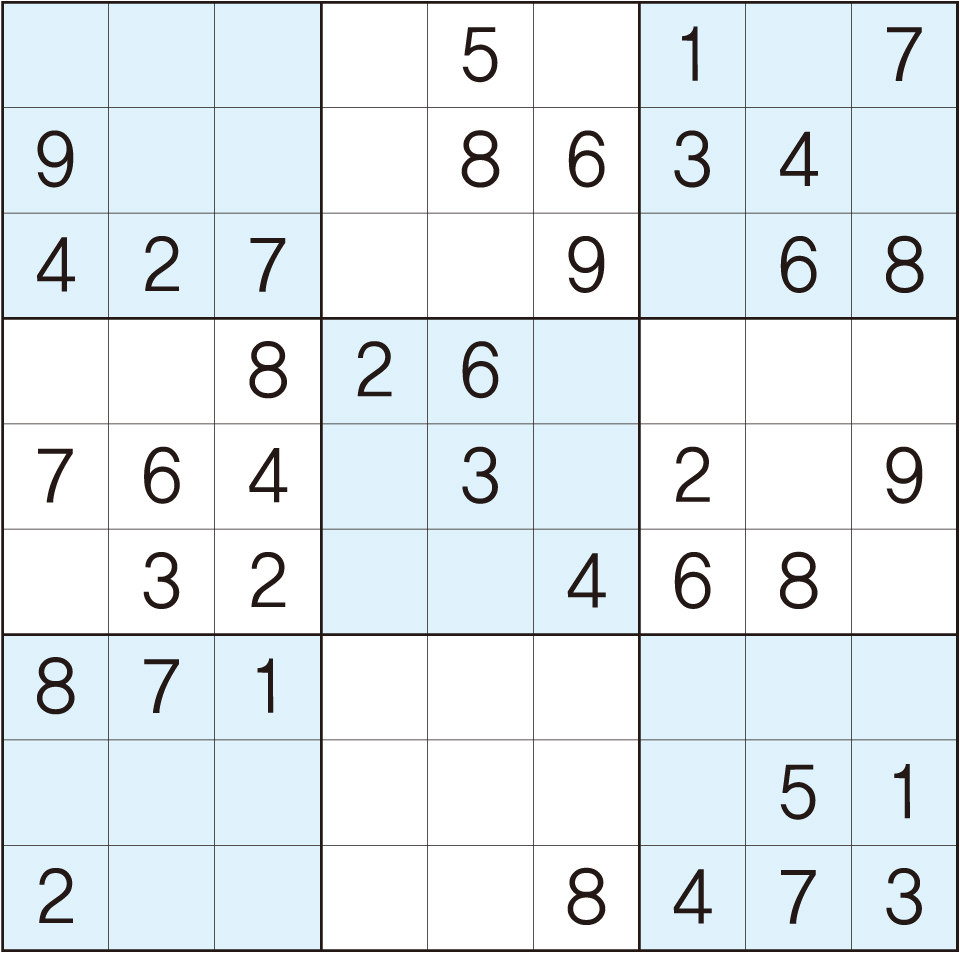 3. 큰 정사각형(9x9) 안에 있는 작은 정사각형(3x3) 안에는 숫자 1~9가 각 한 번씩 들어간다.