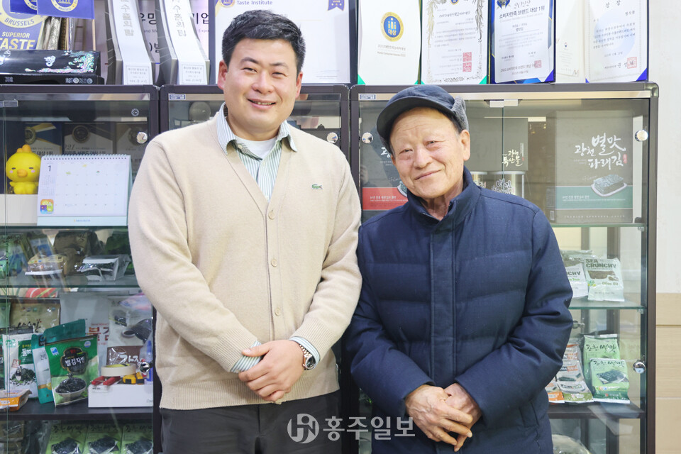 [홍주일보 홍성=이정은 기자] 1960년대 말, 매서운 바닷바람을 뚫고 천북·대천·보령·오천 등 김 산지를 찾던 소년이 있었다. 양어깨엔 100장씩 묶인 김 200속이 굴레처럼 얹혀 있었다. 막차를 놓치면 달빛을 벗 삼아 광천까지 사오십 리를 걸어야 했던 소년은 50여 년이 흐른 지금, 그의 아들과 함께 전 세계 15개국에 한국의 맛을 전하는 수출 역군이 됐다. 1세대의 헌신과 2세대의 혁신이 쓴 ‘K-푸드’ 성공기, ‘광천별맛김’의 이재부 대표(74)와 아들 이성행 대표(42)의 이야기를 시작한다.