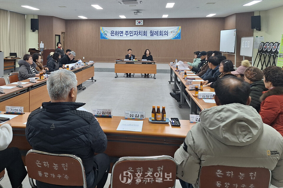 [홍주일보 김용환 기자] 은하면(면장 심선자)이 1월 한 달간 관내 주요 사회단체들과 릴레이 회의를 개최하며 새해 면정 운영을 위한 본격적인 행보에 나섰다.