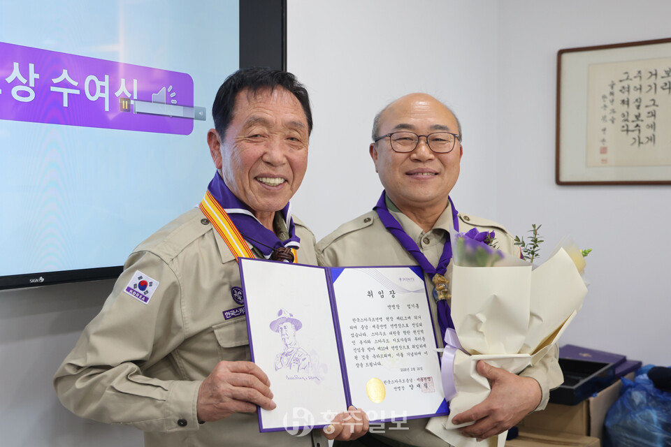 [홍주일보 홍성=김용환 기자] 한국스카우트 충남·세종연맹(이임 연맹장 양재필 취임 연맹장 엄기홍)은 지난 20일 스카우트 충남연맹회의실에서 ‘2026 정기총회 및 연맹장 이·취임식을 개최했다.