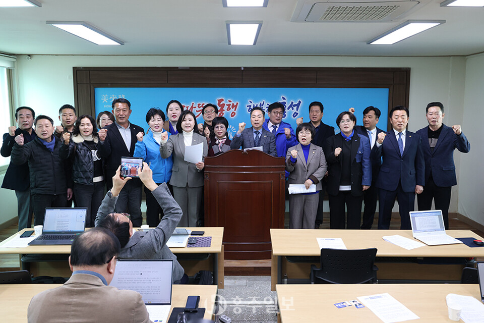 문병오·최선경·신동규·이정희 의원 등 더불어민주당 소속 의원 일동은 지난 26일 군청 브리핑룸에서 기자회견을 열고 “행정통합 특별법 처리 무산은 단순한 절차 지연이 아니라 충남과 대전의 미래를 가로막은 중대한 정치적 책임 방기”라고 주장했다.