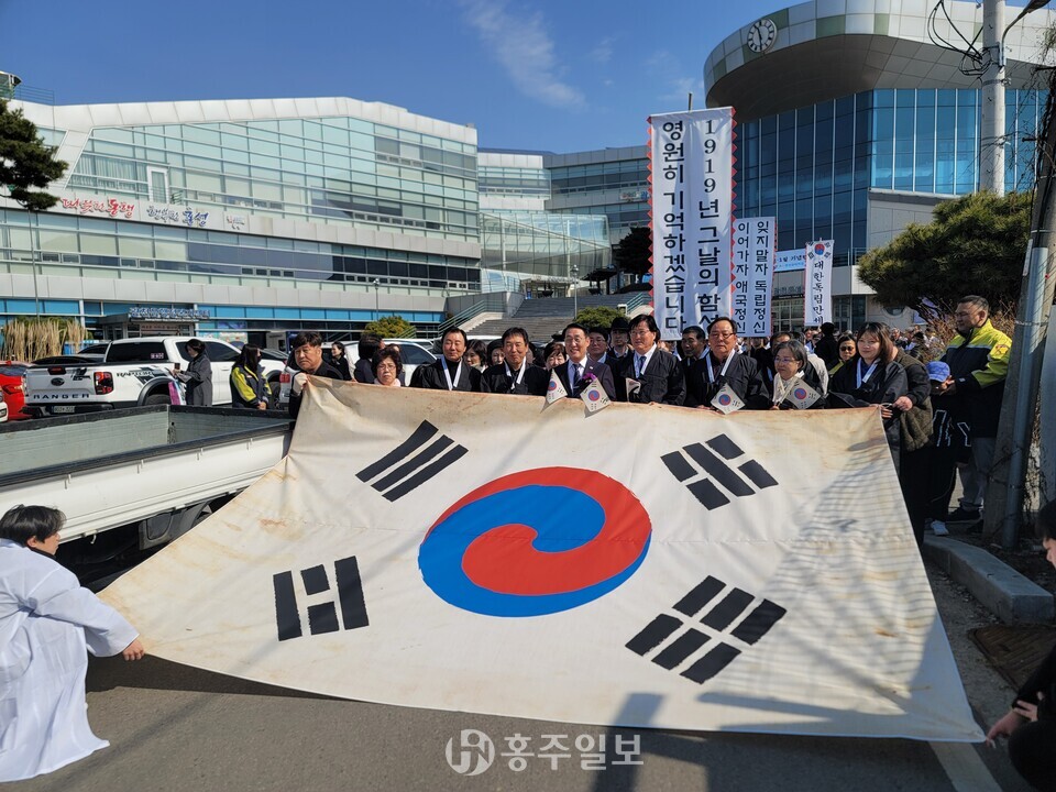 홍성군이 지난 1일 광천문예회관과 광천시장 일원에서 ‘광천읍 제107주년 3·1절 기념행사’를 열고 선열들의 독립 정신을 되새겼다.<사진>