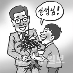 우리나라의 초등학교 의무교육은 1950년대 후반, 중학교 의무교육은 1985년 도서·벽지 지역부터 단계적으로 확대됐고 고등학교 졸업자의 대학진학률(등록자 기준)은 1990년 27%, 2000년 62%, 2010년 75%, 2014년 71%다. 지난 1년간 학창시절 선생님에게 전화, 선물, 방문 등으로 감사 인사 여부를 물은 결과 22%가 한 적이 있다, 78%는 하지 않았다고 답한 것으로 나타났다. 요즘 학교 선생님들은 학생들에게 존경을 받고 있다고 보는지 물은 결과 83%가 그렇지 않다, 9%만이 존경받고 있다고 답했으며 8%는 의견을 유보한 것으로 조사됐다. 성, 연령, 지역, 직업 등 모든 응답자 특성별로 요즘 선생님들이 ’존경받지 못하고 있다’는 응답이 70%를 넘어 우리 교육 현장을 우려의 눈길로 보는 사람이 많았다. 요즘 선생님들은 학생들에게 존경받지 못한다는 인식은 경쟁·입시 위주 교육이 사교육을 부추기고, 사교육 비중이 커지면서 공교육은 더 후퇴하는 상황이 반영된 결과로 보인다고 분석이다. 따라서 실추된 교권(敎權)을 다시 확립하는 데는 일선의 노력도 필요하겠지만 국가 차원에서의 장기적 교육 방향과 정책 수립이 선행돼야 할 것으로 보인다.