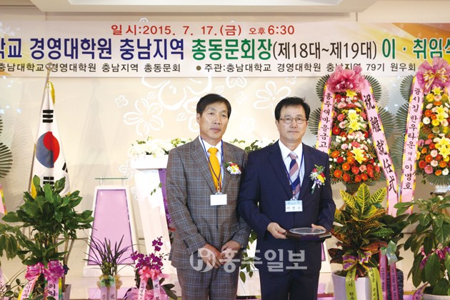 충남대학교 경영대학원 충남지역 총동문회 제19대 신임회장으로 이병옥(79기) 회장이 취임했다. 충남대 경영대학원 충남지역 총동문회는 지난 17일 홍성읍 청담웨딩홀(구 향군회관)에서 동문 및 관내 기관단체장 등 150여 명이 참석한 가운데 총동문회장 이·취임식을 가졌다. 이날 박기성 회장이 이임하고 신임 이병옥 회장이 취임했으며, 동문들은 이임하는 박기성 회장 등 제18대 임원에게 감사패와 공로패 등을 전달했다. 이어 충남대 경영대학원 총동문회는 관내 모범학생 5명에게 각 30만 원씩 총 150만 원의 장학금을 전달했다. 취임사를 통해 이 회장은 “신도청시대를 맞아 동문들의 지혜를 모아 홍성이 충남 중심으로 거듭나고 동문회와 동문들의 발전을 위해 힘쓰겠다”고 말했다. 한편, 제19대 총동문회 임원진은 다음과 같다. △회장 이병옥 △수석부회장 김재흥(80기) △부회장 고진배(81기) △이병석(82기) △수석감사 박성완(74기) △감사 곽봉식(76기) △사무총장 이창엽(79기) △재무국장 신영식(79기) △대외협력국장 이은석(76기) △대내협력국장 박완준(82기)