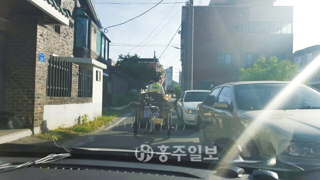 무더위에 지친 할아버지를 위해 손수레를 대신 끌어준 경찰관의 사진과 사연이 사회관계망서비스(SNS)를 통해 알려지며 잔잔한 감동을 주고 있다. 사진의 주인공은 홍성경찰서 오관지구대 설두진 순경이다. 오관지구대 박정근 경사와 설두진 순경은 지난 3일 지역의 한 고등학교 앞에 할아버지가 쓰러져 있다는 제보를 받고 현장에 출동했다. 현장에서 폐지를 실은 손수레와 쓰러진 할아버지를 발견한 박 경사 등은 할아버지를 흔들어 깨웠다. 정신을 차린 할아버지는 “더운 날씨에 무리해서 폐지를 줍다보니 잠깐 의식을 잃었을 뿐 괜찮다”며 집으로 돌아가야 한다고 했으나, 할아버지가 무더위에 다시 쓰러질 것을 우려한 설 순경은 자신이 손수레를 끌어 집으로 옮겨 드리겠다고 말하고 대신 손수레를 끌었다. 같이 출동한 박 경사는 할아버지를 순찰차에 태우고 손수레를 에스코트하며 집까지 안전하게 모셔다드렸다. 몇 일 후 설 순경이 손수레를 끌고 있는 사진이 SNS에 올라왔고 이를 본 네티즌들은 ‘감동적’이라며 칭찬과 격려의 메시지를 남겼다. 설순경은 “할아버지를 위해 경찰관으로서 당연히 해야 할 일을 한 것인데, 이렇게 화제가 될 줄 몰랐고 앞으로도 국민을 위해 노력하는 경찰이 되겠다”고 다짐했다.