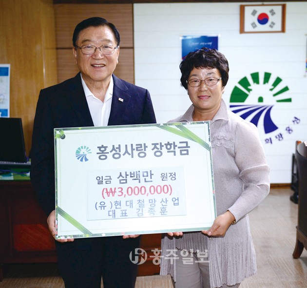 현대철망 김종훈 대표는 지난 7일 군수실을 찾아 지역인재육성을 위해 홍성사랑장학회(이사장 김석환 군수)에 장학금 300만 원을 기탁했다. 저작권자 © 홍주일보 무단전재 및 재배포 금지 홍주일보 다른기사 보기 페이스북 카카오톡 URL복사 기사공유하기