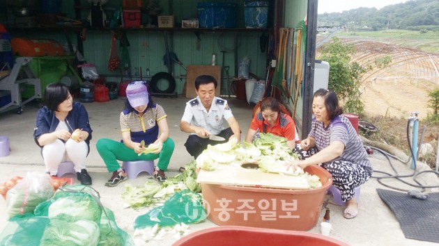 지난 19일 결성면 여성자율방범대(대장 최경희)는 사랑의 김치 나눔 봉사활동을 가졌으며, 여성자율방범대원 10여 명, 윤주선 면장, 이정열 치안센터장이 참여해 일손을 보탰다. 저작권자 © 홍주일보 무단전재 및 재배포 금지 홍주일보 다른기사 보기 페이스북 카카오톡 URL복사 기사공유하기