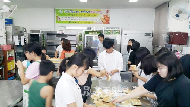 홍성보훈지청(지청장 정현종)은 지난 22일 직접 만든 빵을 나라를 위해 헌신한 보훈가족 50명에게 전하는 행사를 가졌다. <사진> 이날 행사에 참가한 홍주제빵기술학원 자원봉사동아리 회원들과 제빵 기술 실습생들은 전문강사 채선병 원장의 지도 아래 쌀을 재료로 해 카스테라를 직접 만든 후 보훈가족에게 전했고, 실습이 끝난 후에는 홍성보훈지청에 방문해 복지 담당자인 김나연 복지사로부터 보훈가족 현황과 재가복지서비스사업에 대해 설명을 듣는 시간을 가졌다. 홍주제빵기술학원 채선병 원장은 “국가를 위해 헌신하신 국가유공자분들이 계시기에 우리가 있고, 또한 미래의 아이들이 있는 것이라고 생각한다”면서 “어르신들이 좋아하시는 쌀로 만든 카스테라를 전달해 드려 마음이 정말 뿌듯하다”고 소감을 밝힌 후, 홍성보훈지청의 보훈가족 대상 복지사업에 대한 지속적인 지원을 약속했다.