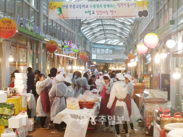 광천읍과 자매결연을 맺은 안양시 소재 부흥고등학교 학생과 인솔 교사 등 70여명이 광천전통시장을 찾아 특별한 체험의 기회를 가졌다.