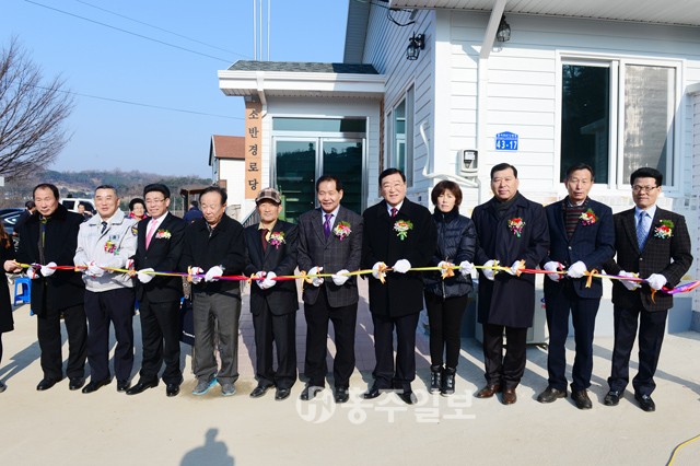 【구항】구항면 청광리 소반마을(이장 김충성) 주민들의 오랜 숙원사업이었던 경로당이 완공돼 지난달 30일 김석환 홍성군수를 비롯해 군내 기관단체장, 주민 등 100여명이 참석한 가운데 준공식이 열렸다. <사진> 이번에 준공된 소반마을 경로당은 1억 4백만 원의 예산을 들여 건축면적 83.07㎡ 규모로 내부에는 방2개, 거실, 주방, 화장실 등을 갖추고 있다. 소반마을 주민들은 1999년 지어진 경로당을 사용해 왔으나, 노후 되어 불편을 겪어오다 올해 경로당 신축사업 추진위원회를발족하여 위와 같은 결실을 보게 되었다.