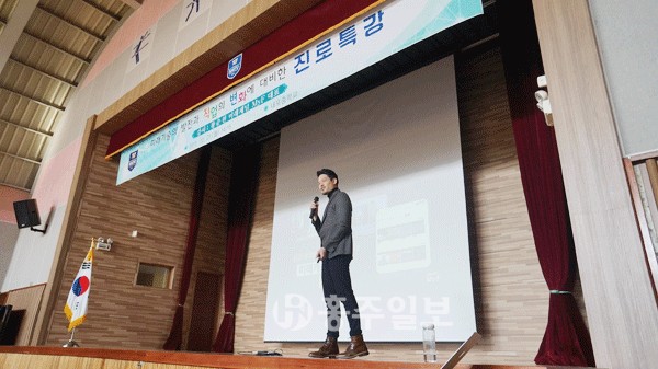 내포중학교(교장 신열호)는 지난달 21일 황준원 미래채널 MyF 대표를 초청해 진로와 관련된 특강을 실시했다. 저작권자 © 홍주일보 무단전재 및 재배포 금지 장윤수 기자 다른기사 보기 페이스북 카카오톡 URL복사 기사공유하기
