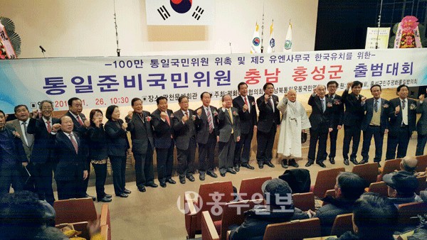 사단법인 홍성군 남북통일운동국민연합(회장 장석기)은 지난 26일 광천문예회관에서 홍성군 통일준비국민위원 출범대회를 개최했다.<사진> 이날 행사에는 하광학 부군수, 홍문표 국회의원, 옹산 전 수덕사 주지를 비롯해 군민 등 300여 명이 참석했다.