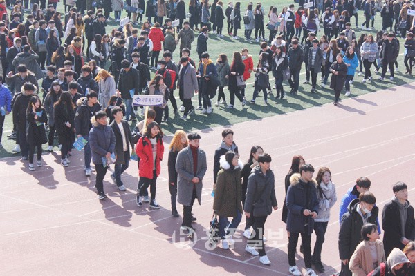 청운대학교(총장 이상렬) 2016학년도 입학식이 지난 24일 청운대학교 대운동장에서 열렸다. 이날 청운대에는 신입생 1485명, 편입생 130명 등 총 1615명이 입학했다. 사진은 입학식 행사를 마친 뒤 설레는 마음으로 학과별 모임을 위해 이동하고 있는 새내기들의 모습.