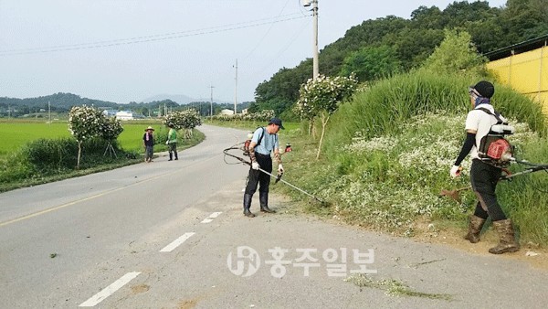 【결성】 결성면 덕우마을(이장 조광성) 주민들은 여름 휴가철을 맞아 군을 찾는 관광객이 증가할 것으로 보고 외부 방문객에게 ‘깨끗한 결성면’, ‘다시 찾고 싶은 결성면’을 선사하기 위해 자발적으로 무궁화길 제초작업을 실시했다.