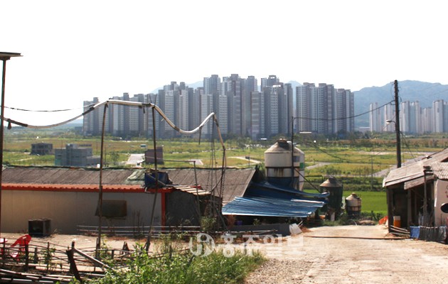 농장주는 “평생을 가축과 함께 살아 온 우리네는 잘 모르겠지만 도시에서 온 입주민들은 축사냄새에 민감할 것”이라고 이해하면서도 “신도시가 조성되기 수십년 전부터 축산농가를 운영해왔는데 신도시가 조성됐다고 나가라는 것이 말이 되느냐. 우리도 허가를 내고 정식으로 가축사육을 하고 있는 것이다. 죄인취급하지 말아 달라”고 토로했다.
