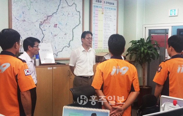 ▲ 홍성소방서 소방행정발전위원회(위원장 차득환)는 말복인 지난 16일 소방서를 방문해 직원들을 격려하며 고충과 애로사항을 듣고 위문품을 직접 전달했다. 저작권자 © 홍주일보 무단전재 및 재배포 금지 홍주일보 다른기사 보기 페이스북 카카오톡 URL복사 기사공유하기