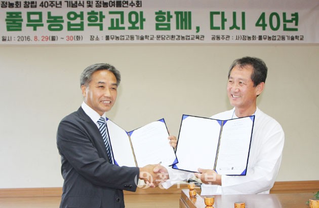 정농회(회장 주형로) 창립 40주년 기념식 및 여름연수회가 지난달 29일 풀무농업고등기술학교와 문당리 환경농업교육관에서 개최됐다. 행사에는 무라카미 신페이 일본 애농회 회장, 김준혁 정농회 고문, 오홍섭 풀무학교 교장, 김석환 군수, 홍문표 국회의원을 비롯한 정농회 회원들과 풀무학교 학생 등 총 250명이 참여했다.