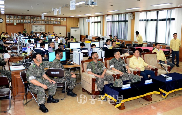 ▲ 홍성군은 국가비상사태에 능동적으로 대처하기 위한 을지연습을 지난달 22일부터 25일까지 3박 4일간 대강당에서 실시해 육군 제1789부대 등 9개 기관 400여명이 참여했다. 저작권자 © 홍주일보 무단전재 및 재배포 금지 홍주일보 다른기사 보기 페이스북 카카오톡 URL복사 기사공유하기