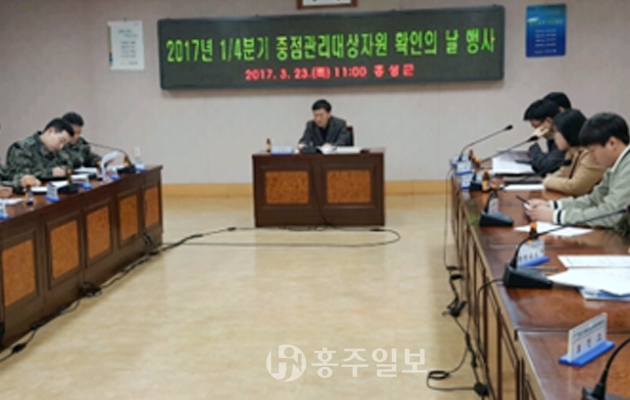 군은 지난 24일 군청 회의실에서 군청, 군부대, 중점지정업체 등 관계관 25명이 참석한 가운데 2017년 1분기 중점관리대상자원 확인의 날 행사를 개최했다.
