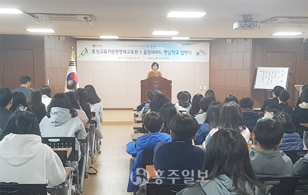 홍성교육지원청(교육장 고옥심)영재교육원 올림피아드 햇살학교는 지난 25일 대회의실에서 2017학년도 입학식을 가졌다. 인문반 14명, 자연반 15명 등 총 109명의 학생이 입학했다.