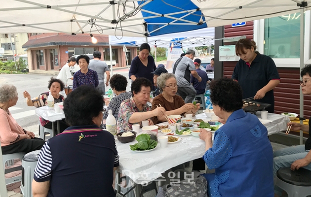홍성군 도시재생지원센터(센터장 염창선)에서 주민참여 사업으로 추진하는 ‘으라차차! 도시활력찾기’ 도시재생프로젝트 1차에 선정된 오관4리 남문동 3040회(회장 이승환)가 지난 19일 남문동 도시재생현장지원센터 앞에서 ‘여기좀봐유’ 마을파티를 개최했다.<사진>