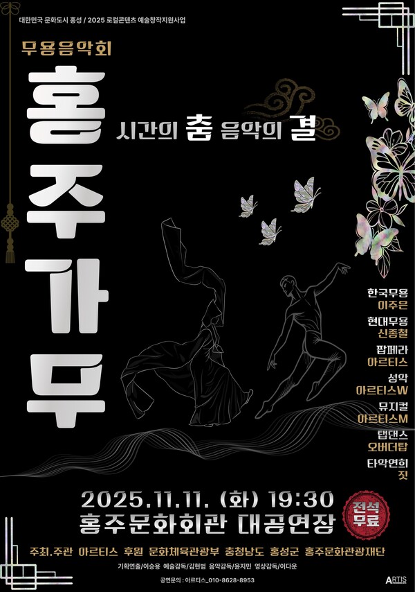 한편, ‘홍주가무: 시간의 춤, 음악의 결’은 문화체육관광부, 충청남도, 홍성군, 홍주문화관광재단의 후원을 받아 진행되며, 지역 예술의 현재와 미래를 함께 바라보는 ‘예술로 하나 되는 축제’로 자리매김할 것으로 기대된다.