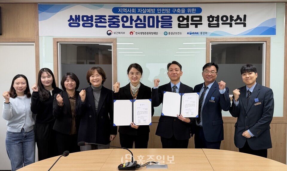 홍성군보건소(소장 정영림)는 지난달 25일 코레일 대전충남본부 홍성관리역(역장 박재훈)과 생명존중안심마을 조성을 위한 업무협약을 체결했다.