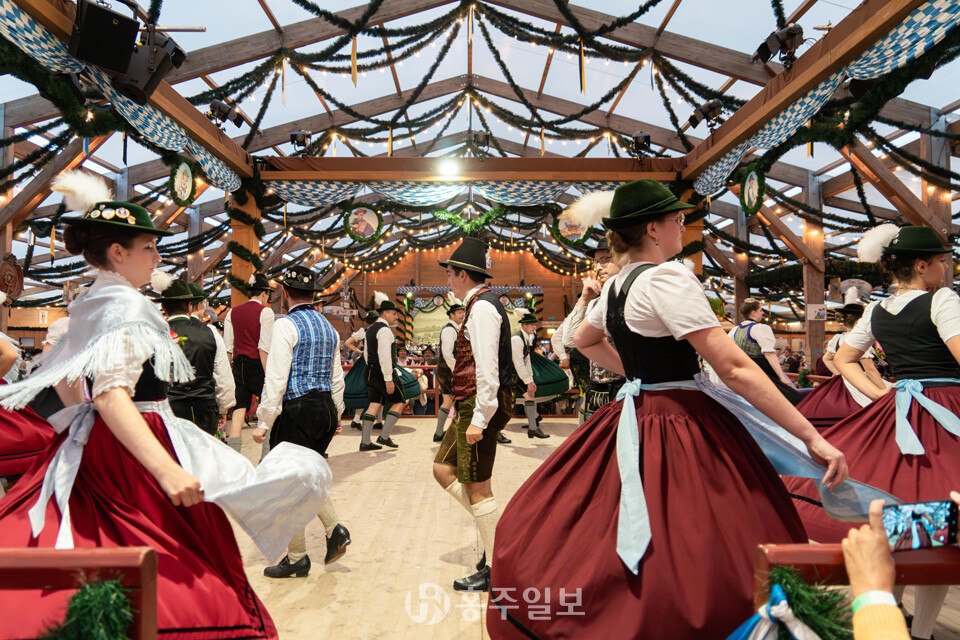 1L가 담기는 거대한 잔을 한 손에 들고 어느새 친구가 된 옆 테이블과도 함께 ‘프로스트(Prost·건배)’를 외치는 색다른 경험도 할 수 있다. 전통 음악과 춤, 파티 음악, 밴드 공연 등 분위기를 끌어올리는 다양한 볼거리도 있다. 클럽을 방불케 하며 신나는 음악에 맞춰 뛰어노는 텐트도 있는 등 각 텐트별 고유한 분위기와 디자인이 있다.