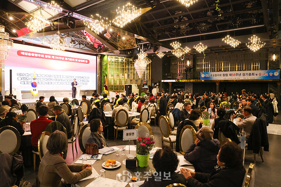 [홍주일보 서울=한기원 기자] 재경홍동향우회(회장 이병일)는 지난달 28일 서울 케이터틀 컨벤션A홀에서 ‘창립 제56주년 재경홍동향우회 정기총회 및 송년의 밤’ 행사를 개최했다.