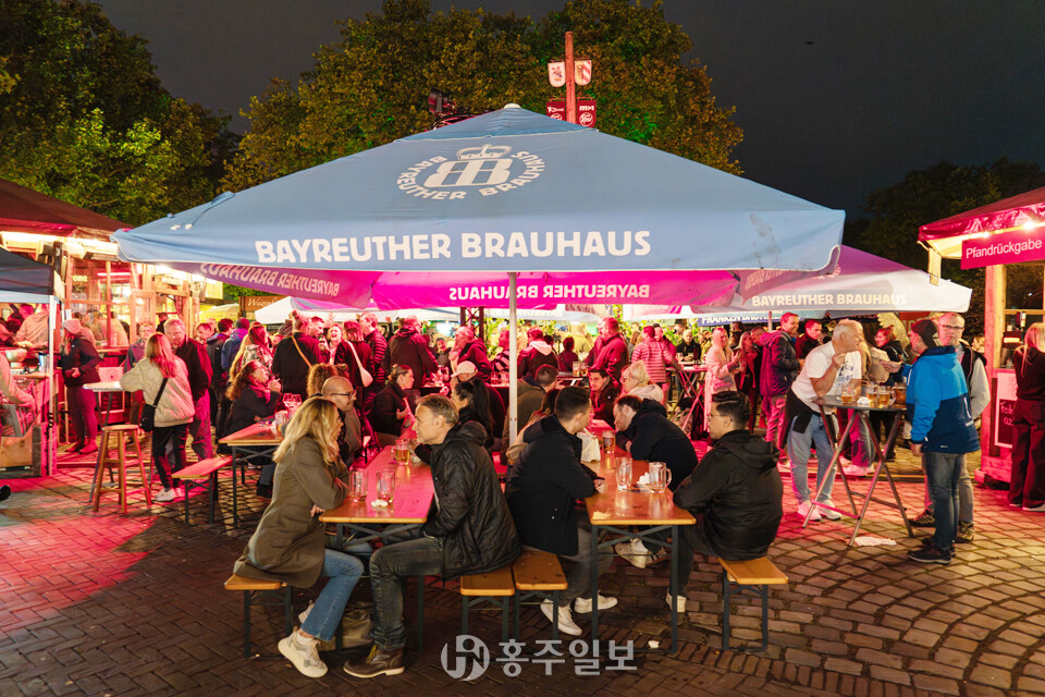 특히 지역 양조장이 제공하는 맥주는 특히 인기가 높았다. 1985년부터 시작된 ‘환영의 시장’은 올해도 쉬트 섬과 한스작스 광장을 중심으로 운영됐다. 약 50개의 목조 오두막이 세워졌고, 각각 지역 특산요리와 지역 양조장의 맥주, 국제 요리 등을 맛볼 수 있다. 합리적인 가격에 시민과 관광객 모두가 부담 없이 향토 맥주의 깊은 풍미를 즐길 수 있는 것이 장점이다.