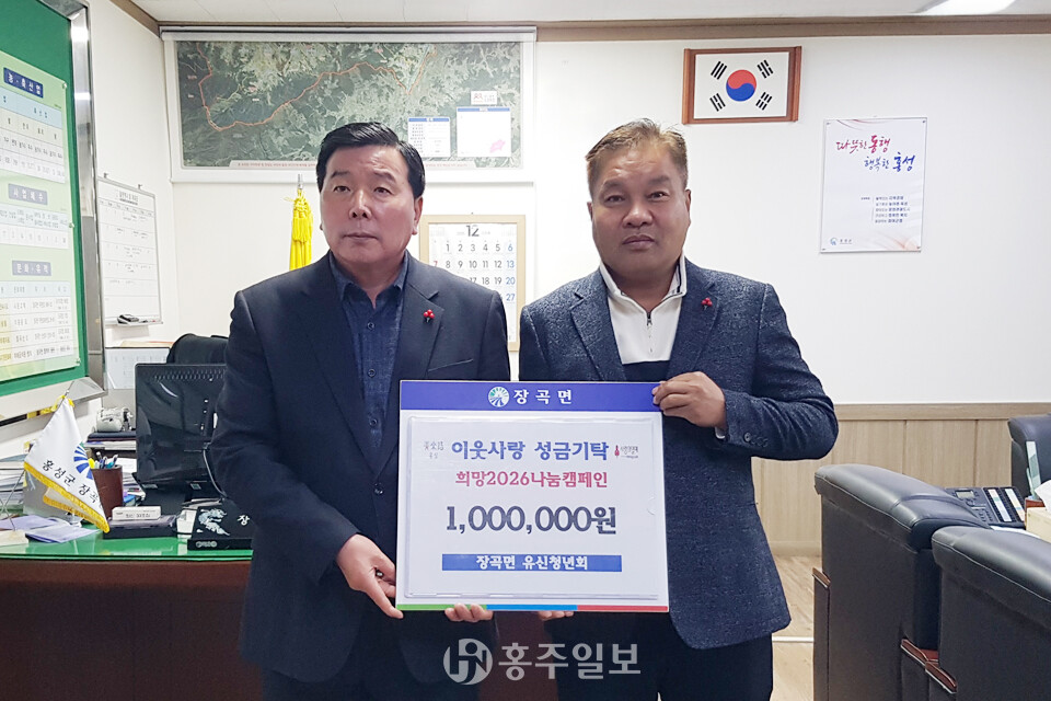 [홍주일보 홍성=김용환 인턴기자] 장곡면 유신청년회(회장 김기식)가 지난 17일 소외된 이웃들을 위한 이웃사랑 성금 100만 원을 기탁하며 따뜻한 나눔의 마음을 이어갔다.