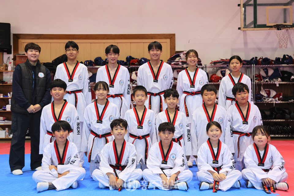 [홍주일보 홍성=이정은 기자] 광천초·광천중·충남드론항공고에 재학 중인 태권도부 학생선수들은 광천읍의 덕명학습장과 민우체육관 매트 위에서 매일같이 훈련을 이어가고 있다. 엇비슷한 꿈을 가진 이들은 반복 훈련 속에서 실력을 다지고, 지역 대표 선수로 성장하기 위한 기반을 차근차근 만들어가고 있다. 이제 스물두 명의 이야기를 시작한다.